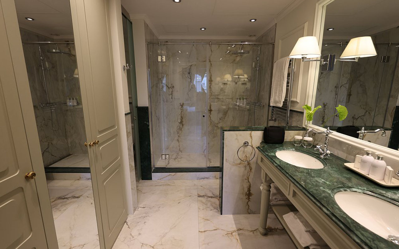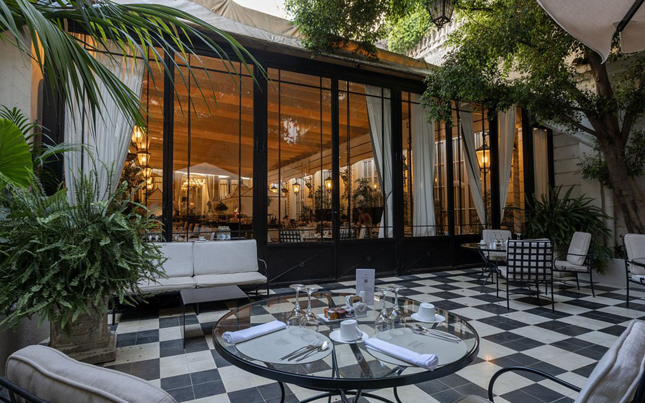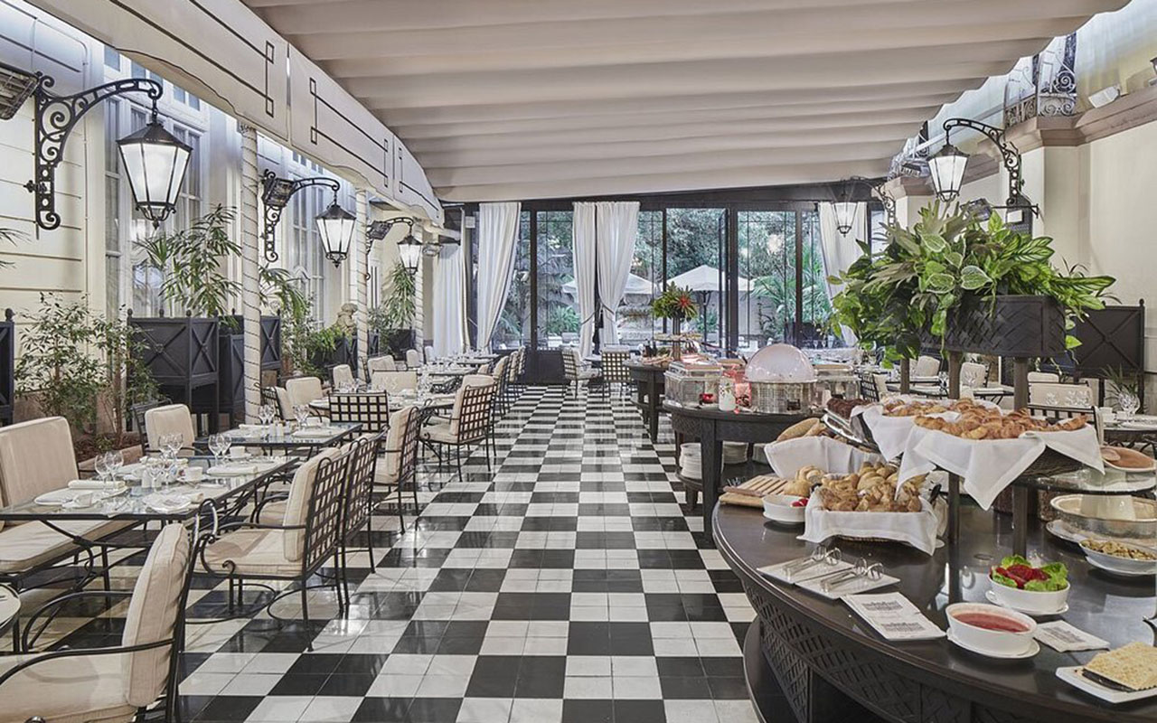 The hotel has 125 rooms and suites, each decorated in a classic style and equipped with modern amenities. Rooms vary in size and design, ranging from cozy double rooms to luxurious suites with separate living areas. Many offer stunning views of the city or the hotel's interior garden.