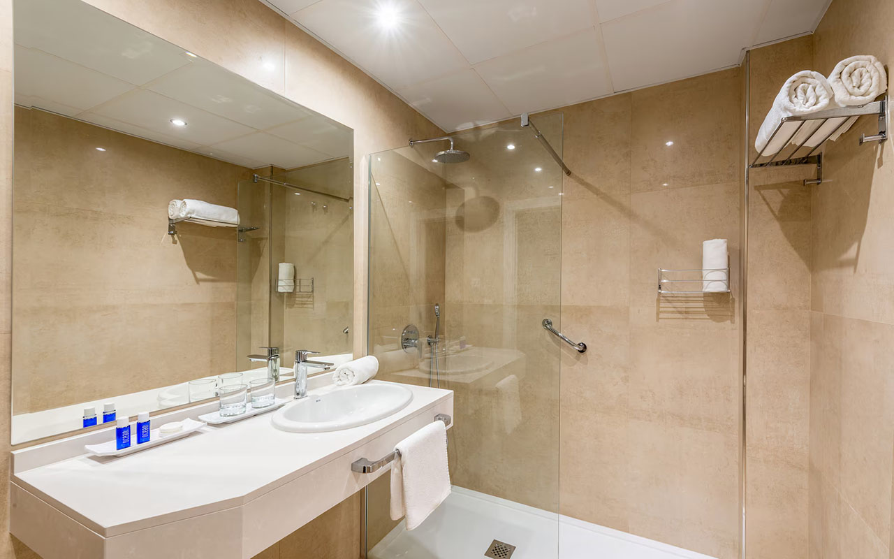 It has 174 rooms with views, 15 of them family rooms, with full bathroom, telephone, free Wi-Fi, air conditioning, satellite TV, minibar and terrace.