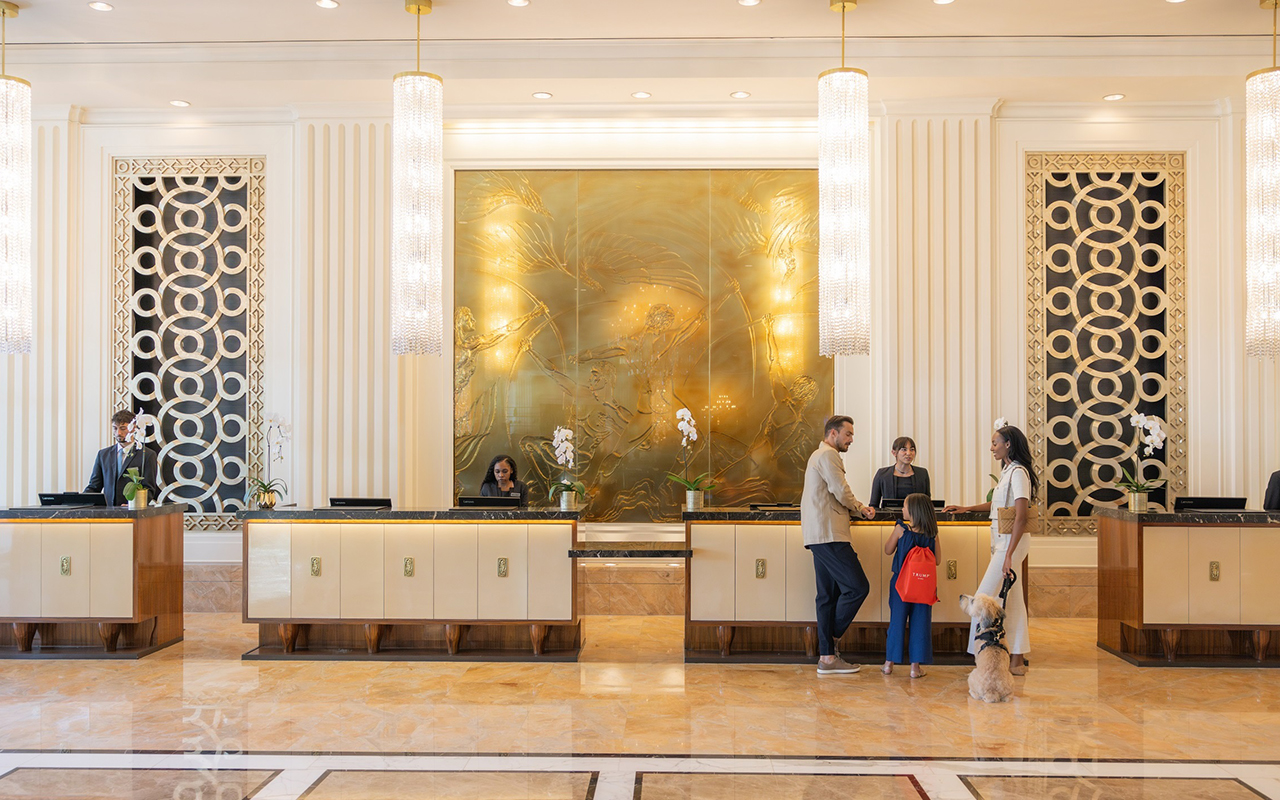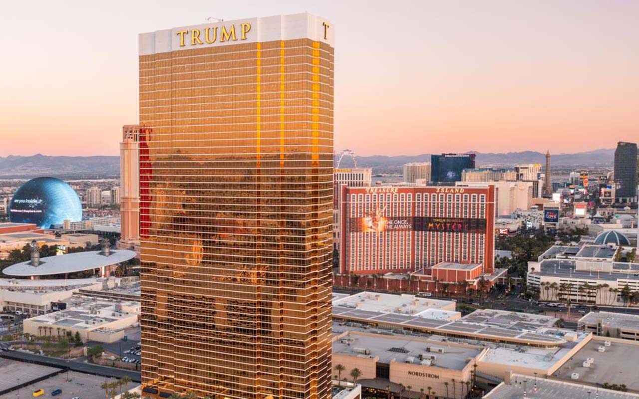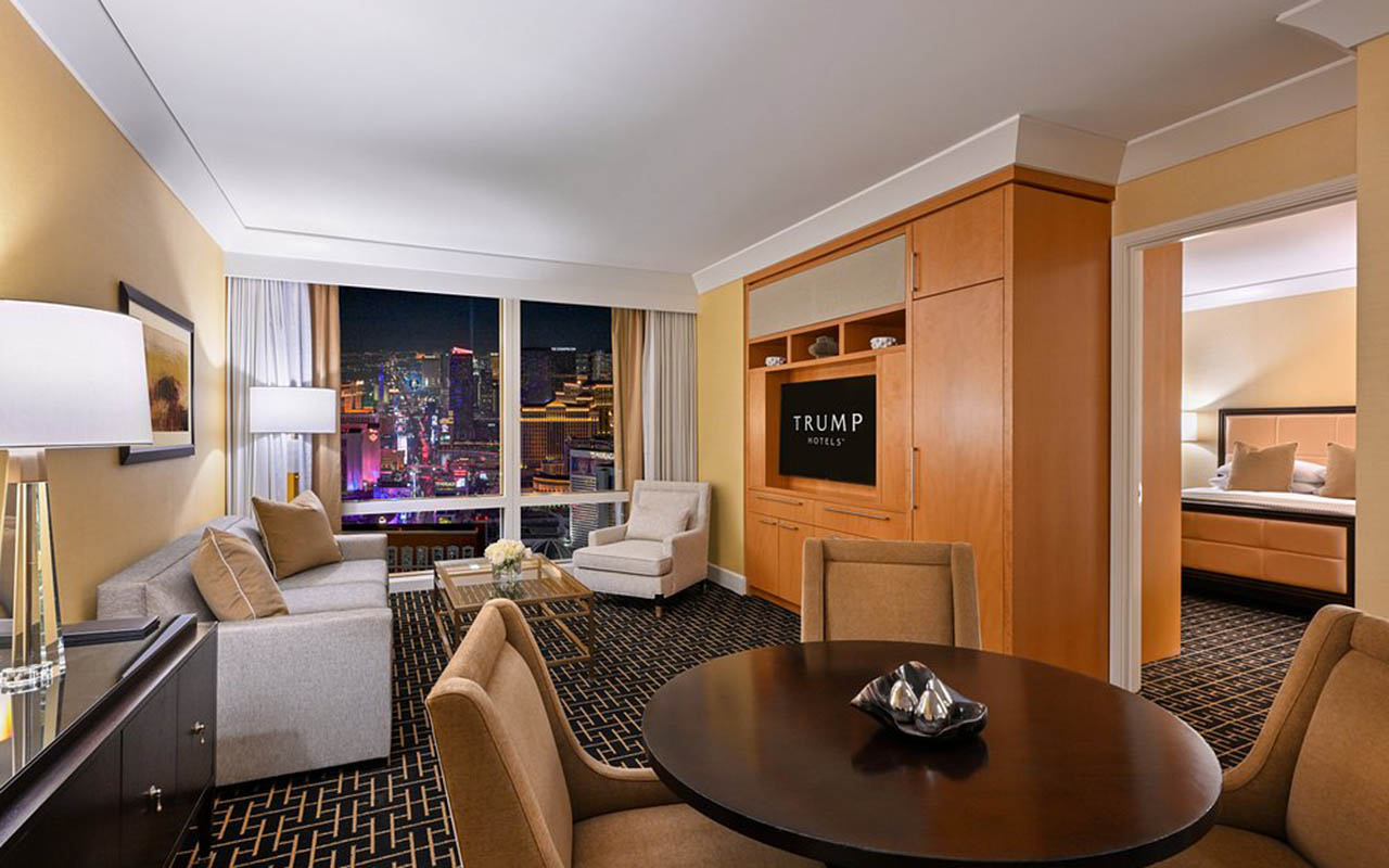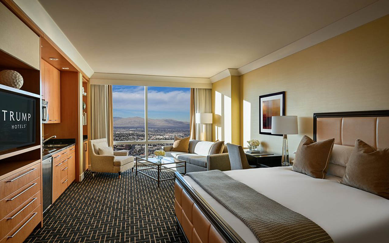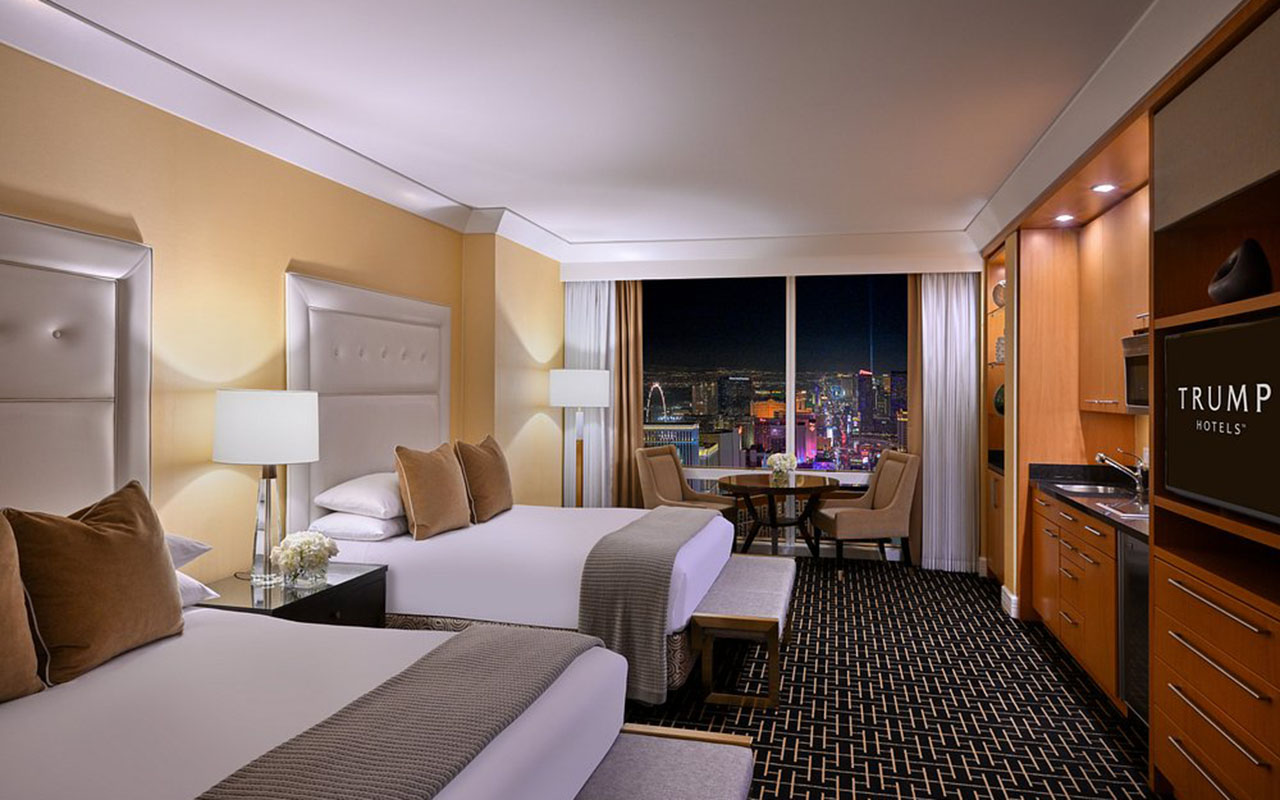 The Trump International Hotel Las Vegas stands out for its understated luxury, spectacular views, and spacious suites with full kitchens. It is ideal for travelers seeking tranquility near the Strip, combined with premium amenities such as a spa, pool, and fine dining. Its casino-free and family-friendly design sets it apart from other resorts in the area. The hotel stands 64 stories high and 622 feet (190 m) tall, featuring 1,282 completely non-smoking suites, all with kitchens, panoramic views of the city and mountains, and high-end details such as Italian marble and floor-to-ceiling windows. It is jointly owned by The Trump Organization and Phil Ruffin, and has received awards such as the 2024 Condé Nast Traveler's Readers' Choice Award.